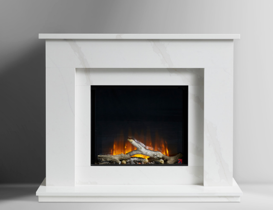 J&R HILL Comforto micro-marble fireplace is made from Bianca Beige micro-marble, it is available in a 48" and 54" width.