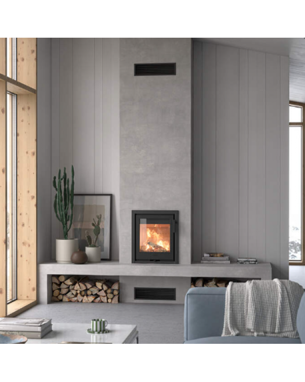 The cast iron Contura i1 is available with 3-sided and 4-sided frames. It is compact and sturdy, with a clean, stylish design that feels at home in both modern and traditional homes. It is the perfect choice for everybody who wants the warm, cozy feeling and at the same time save space.Compared to an open fireplace, the Contura 110 and Contura i1 offer more efficient heating. An open fire usually draws more heat from a room than it adds. With Contura 110 and Contura i1 heat is emitted through the glass door. Your heat economy improves, with higher efficiency and more modern combustion technology.