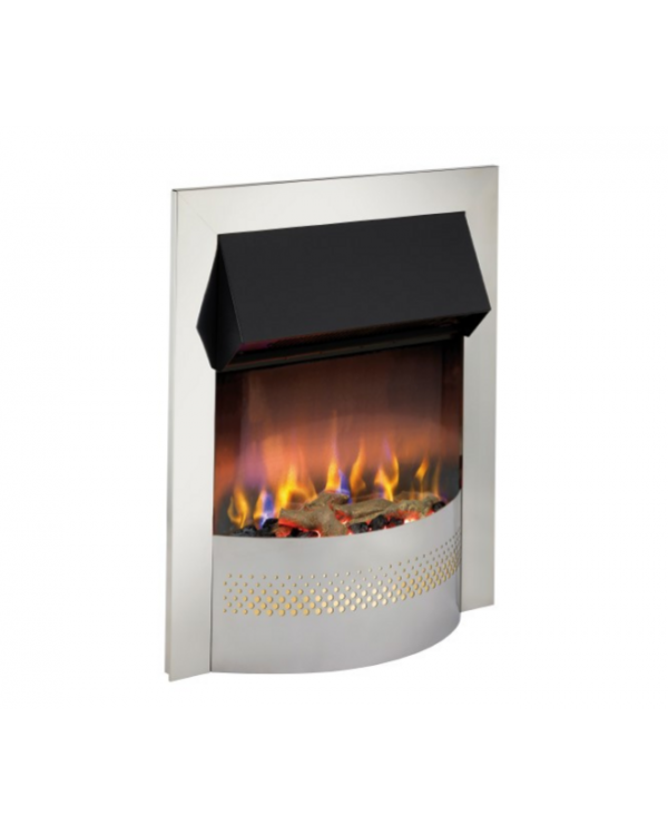 The Portree inset electric fire brings stunning 3D flames and modern style to your home. It's chrome body with brass detailing creates a sophisticated look, while Optiflame 3D lets you choose flame colour, brightness and fuel bed style for a personalised ambience. Use flame-only mode for year-round cosiness or add up to 2kW of heat, all easily controlled with the remote or manual controls for effortless comfort and atmosphere.