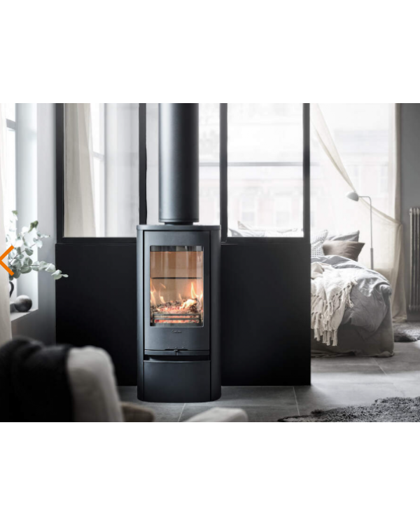 A compact stove for easy positioning in any interior. The basic model in this range is available in grey, white and black, and the upgrade to Style now means that the door features an even taller glass pane for even better flame visibility. The chimney can be connected to the top or rear of the stove on all models.